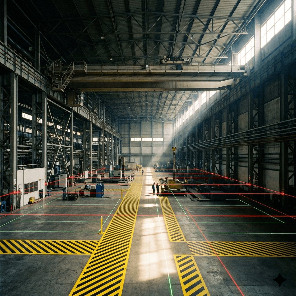 위험 감지 시 100dB 이상의 고음 스피커로 음성 경고를 내보내며, 바닥에 '이동 중 위험' 그래픽 라이트를 투사하여 작업자가 시각적으로 위험 구역을 즉각 인지하게 합니다.